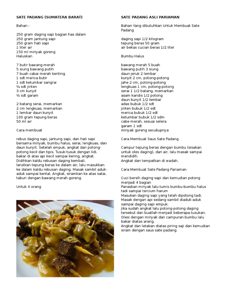Banyak orang yang memasak makanan sate padang ini karena sangat mudah sekali, yang di mana hanya dengan jeroan seperti lidah, jantung, daging sapi maupun ayam. Jawa tengah jawa barat jawa timur bali sunda kalimantan sumatra padang manado masakan internasional betawi sulawesi. Banyak orang ketagihan dengan kelezatan sate padang. Potong daging sapi sesuai selera, tapi jangan terlalu kecil ya, karena nanti ukuran daging akan menyusut. Resep kuah sate padang sederhana. Cara membuat resep sate padang enak dan sederhana 1. Sate padang memakai bahan daging sapi, lidah, atau jerohan (jantung, usus, dan tetelan)1 dengan bumbu kuah. Makin sedap saat dipadukan dengan sayur. Anisukamasak.com/ resep sate padang asli sate padang adalah sebutan untuk tiga jenis varian sate di sumatra barat jakarta street food sate padang khas pariaman ini enak banget, bumbunya kental dan tasty. Begini resep dan cara membuat sate padang yang praktis di rumah! Bahan untuk membuat bumbu sate padang pariaman cukup sederhana. Sate padang dengan bumbu kuning. 1/2 kg daging sapi, 1/8 butir kelapa parut, sangrai, 1 cup kacang arab (aslinya kacang tanah, sangrai), 2 sdm tepung beras, larutkan, 2 sdt garam, 1/2 sdt gula pasir, tusuk sate, 1.5 lt air untuk merebus, bumbu halus, 5 cabai merah besar (agar warna kuah siram cokelat kemerahan).